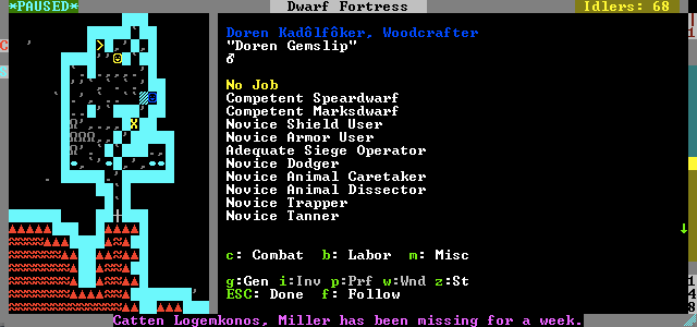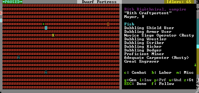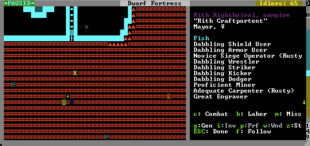 I disable the fishing labor on the vampire mayor, and move on. Without unpausing the game, I check around the rest of the fortress.