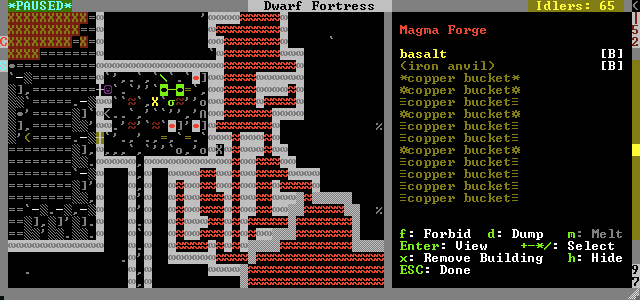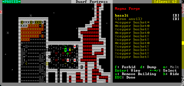 A crowd of haulers rushes into the forges, each grabbing a single bucket off the piles that must crowd around the anvil, and rushes back up into the fortress.