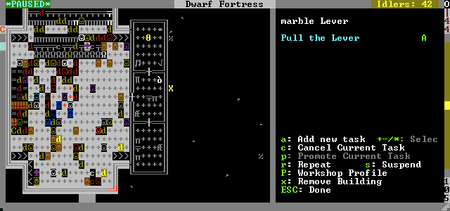 Time to restart the trap, and see if something can be done. I order the pumps to be powered, and nine dwarves rush in to take care of the job.