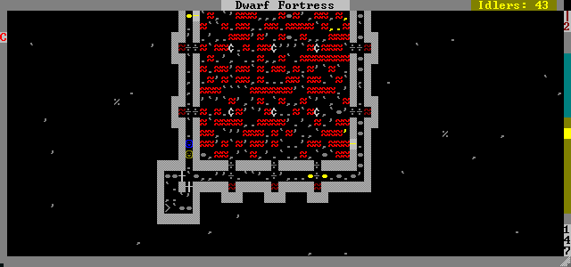 Things look okay. I'm fine with letting the entire fortress idle - they're safe where they are. I look back towards the surface.